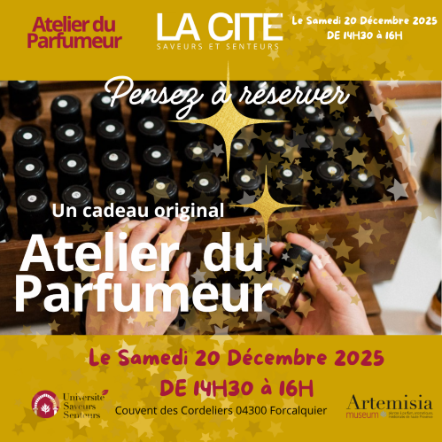 Conçu par Lucien Ferrero, grand parfumeur à Grasse, cet atelier permet d’acquérir pour les débutants, ou d’améliorer pour les plus confirmés, ses connaissances olfactives. L’objectif est d’apprendre par la pratique les bases de la composition d’un parfum et de créer, tel un professionnel, un parfum personnalisé et unique.